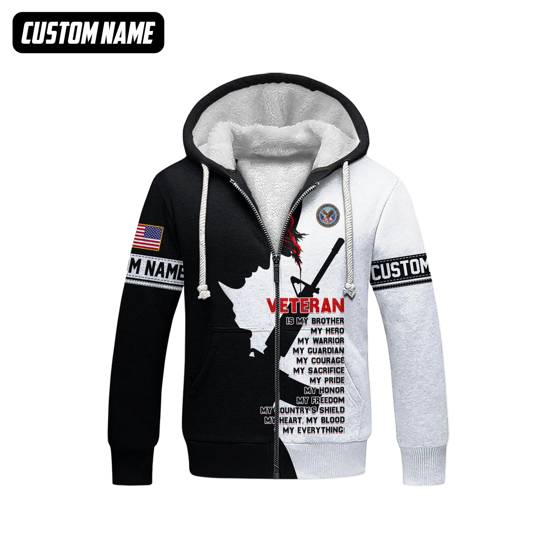 Veteran Hoodie – My Brother My Hero My Everything, Patriotic Military Honor Zip Up