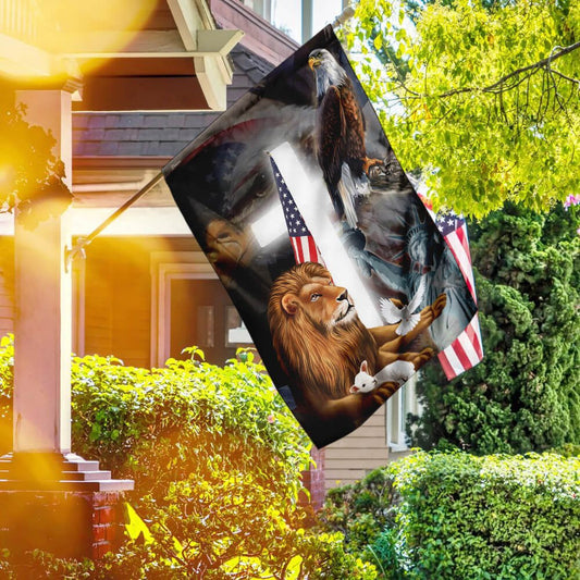 • Christian Garden Flags, Lion and Lamb American Flag, Christian House Flags, Christian Cross Flag, Faith Flag, easychoo.com