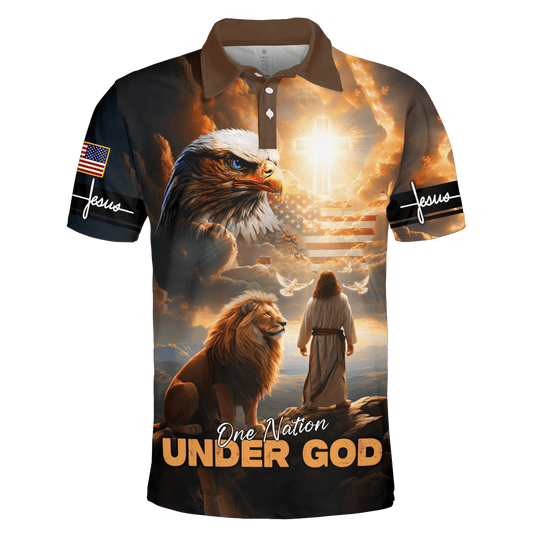 • Jesus Vintage Shirt - One Nation Under God - Zipper Polo Shirt, easychoo.com
